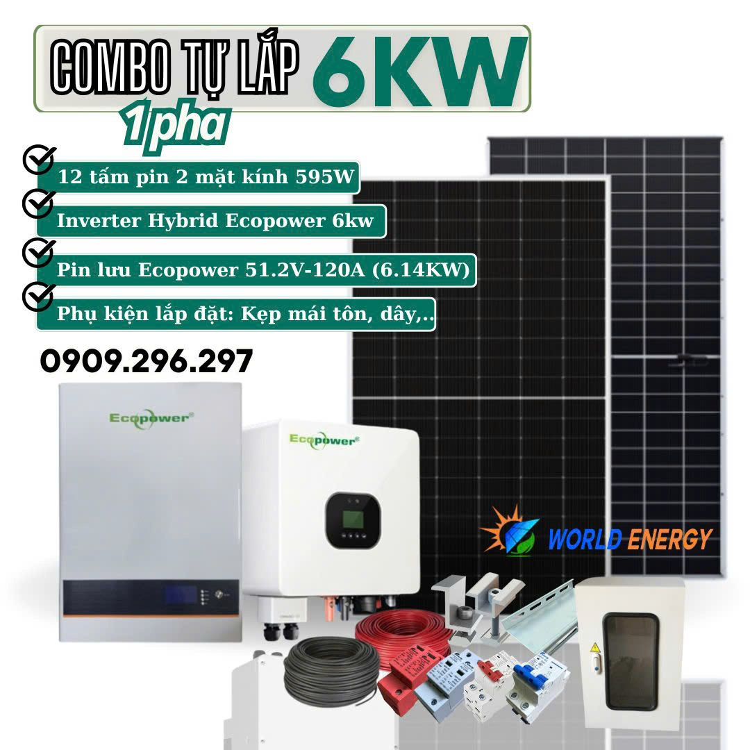 Hệ thống điện năng lượng mặt trời Hybrid 6KW (combo 03)